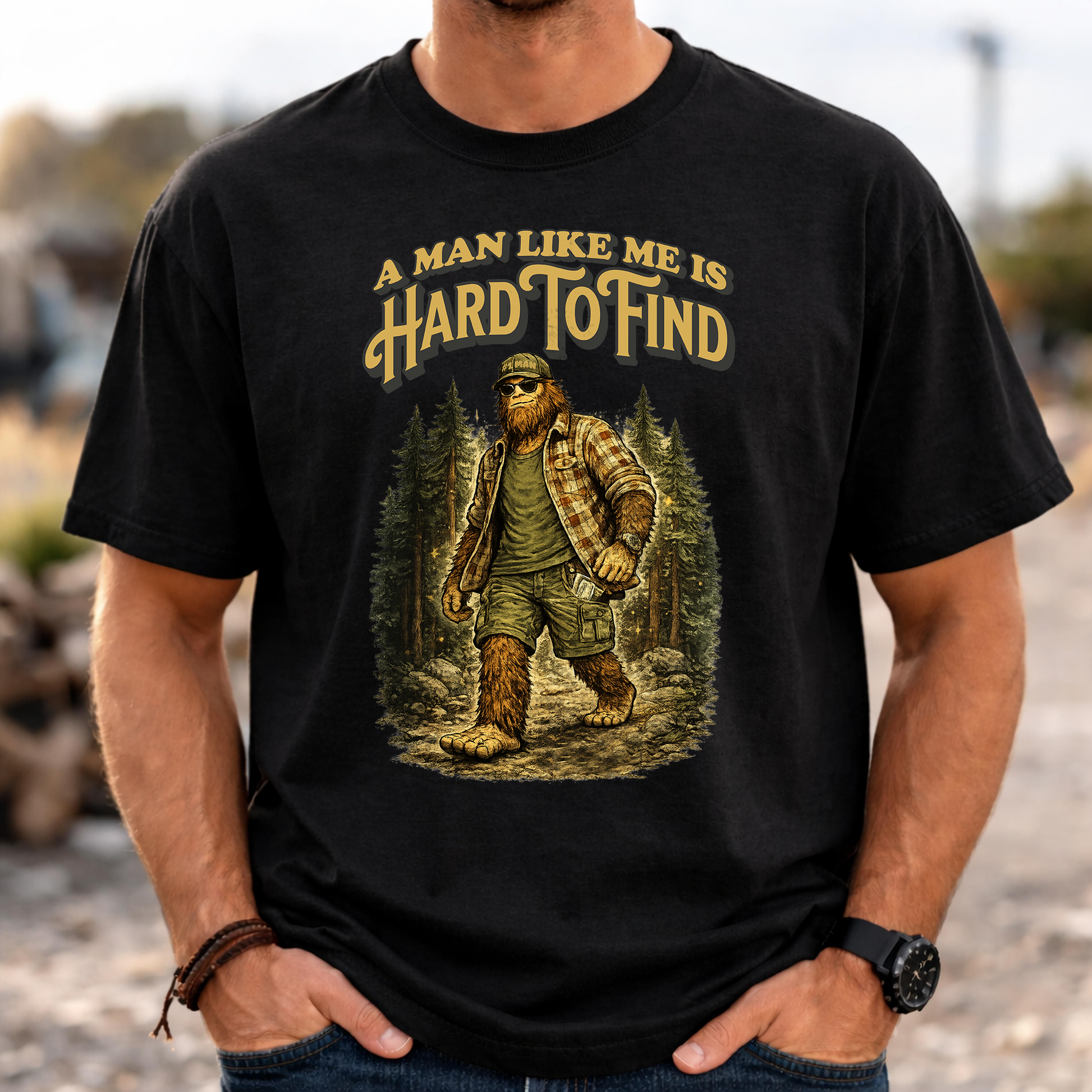 “A Man Like Me Is Hard To Find” Funny Bigfoot T-Shirt for Men, Retro Vintage Gift Idea for Husbands, Buddies & Sasquatch Lovers – Organic Heavy T-Shirt