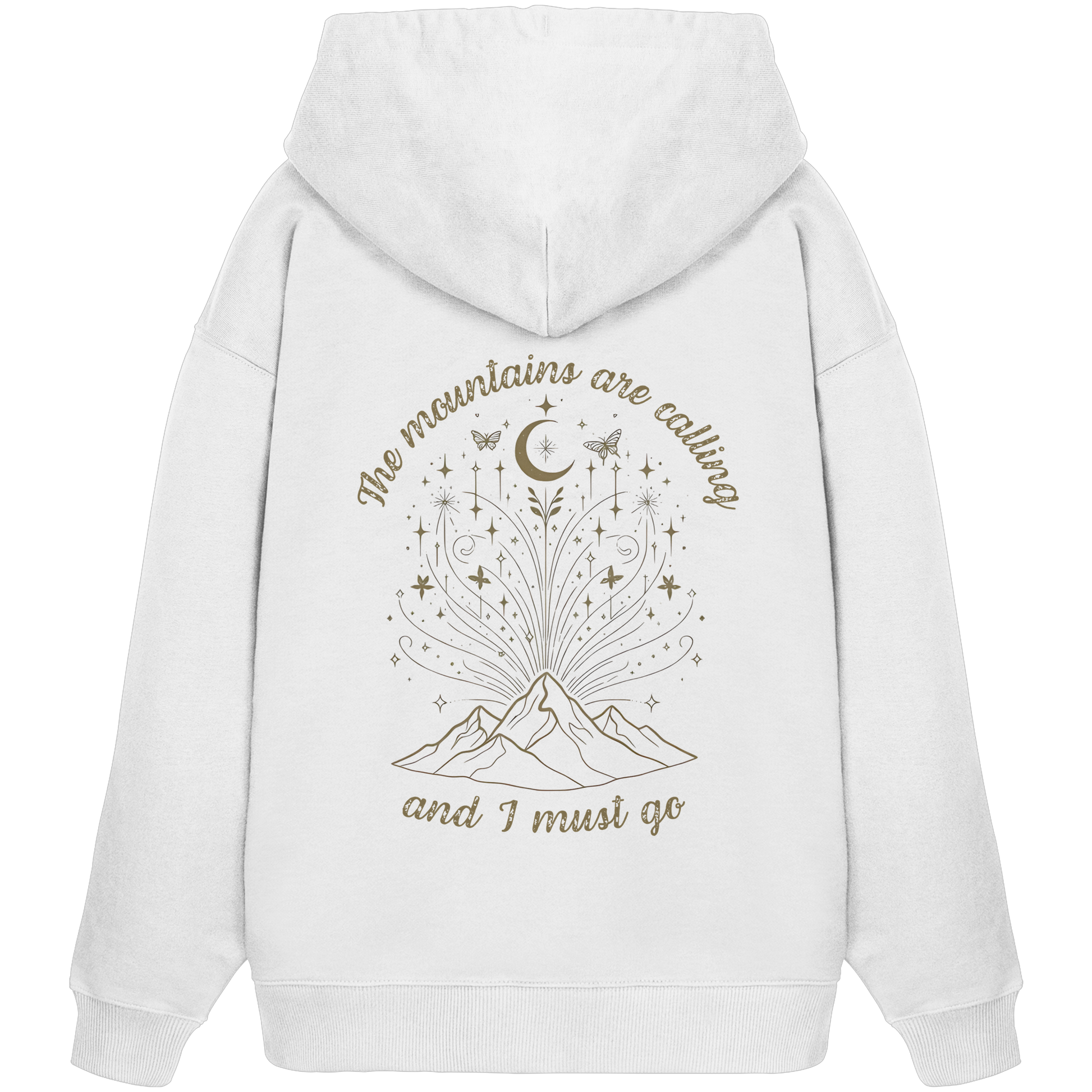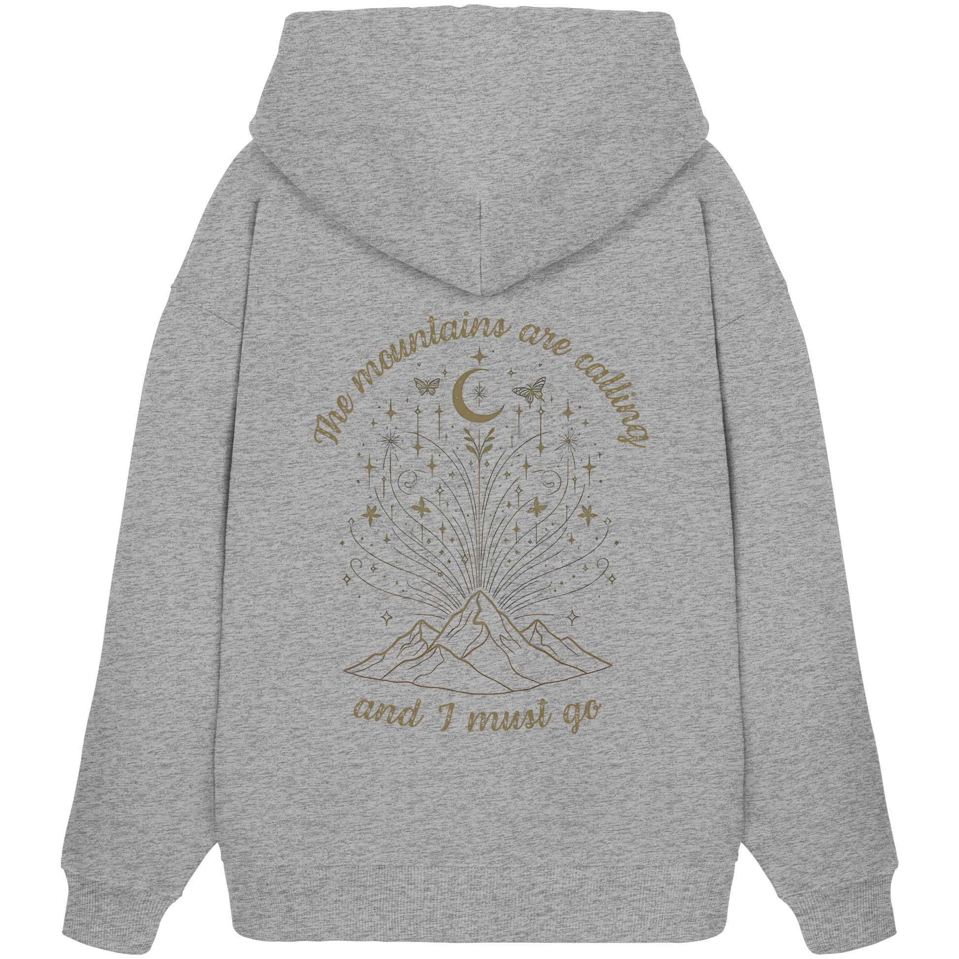Hol dir jetzt deinen nachhaltigen Oversize Hoodie mit Berg-Design und bring ein Stück Natur in deinen Alltag.