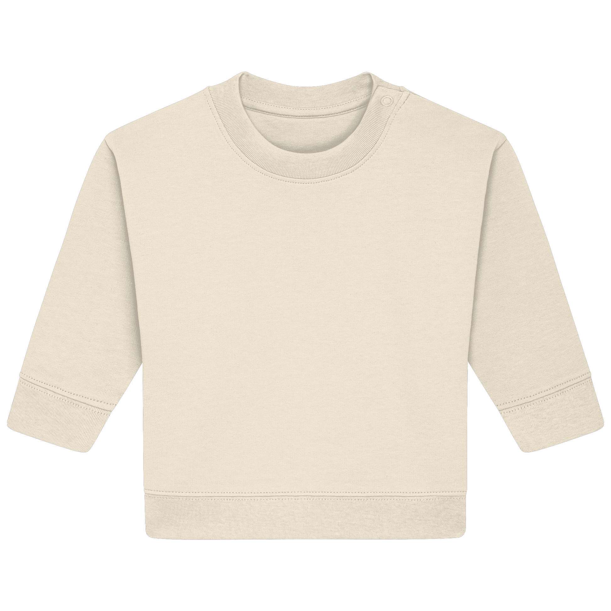 Gefertigt aus 85 % Bio-Baumwolle (ringgesponnen, gekämmt) und 15 % recyceltem Polyester ist das Sweatshirt weich, hautfreundlich und angenehm warm. Die 280 g/m² Grammatur macht es kuschelig und gleichzeitig atmungsaktiv – perfekt für sensible Babyhaut und kalte Wintertage.